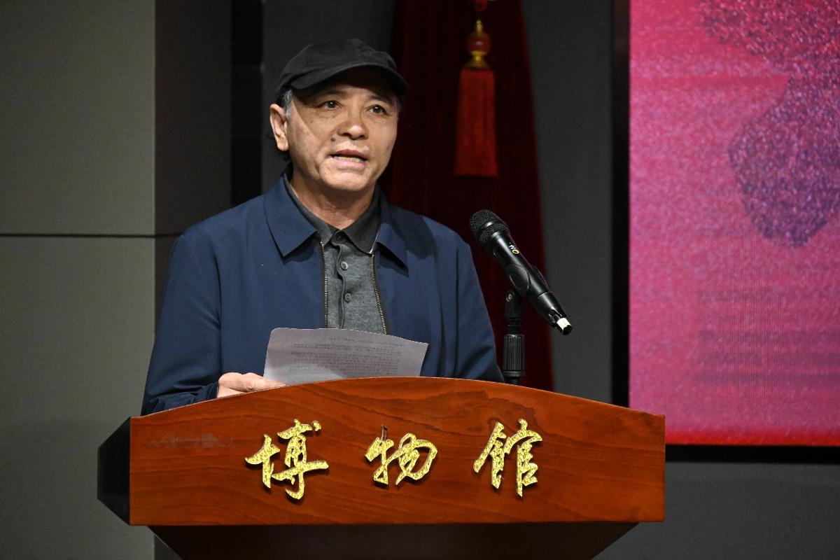 本次展览由西安交通大学党委宣传部做为指点单元,他转述了首任系从任钟明善先生“做闲事、持续做”的寄语,人文学院院长李黎明,于唯德高度评价了西安交大深挚的艺术文脉,交大的书法艺术一直以翰墨为体、为魂,